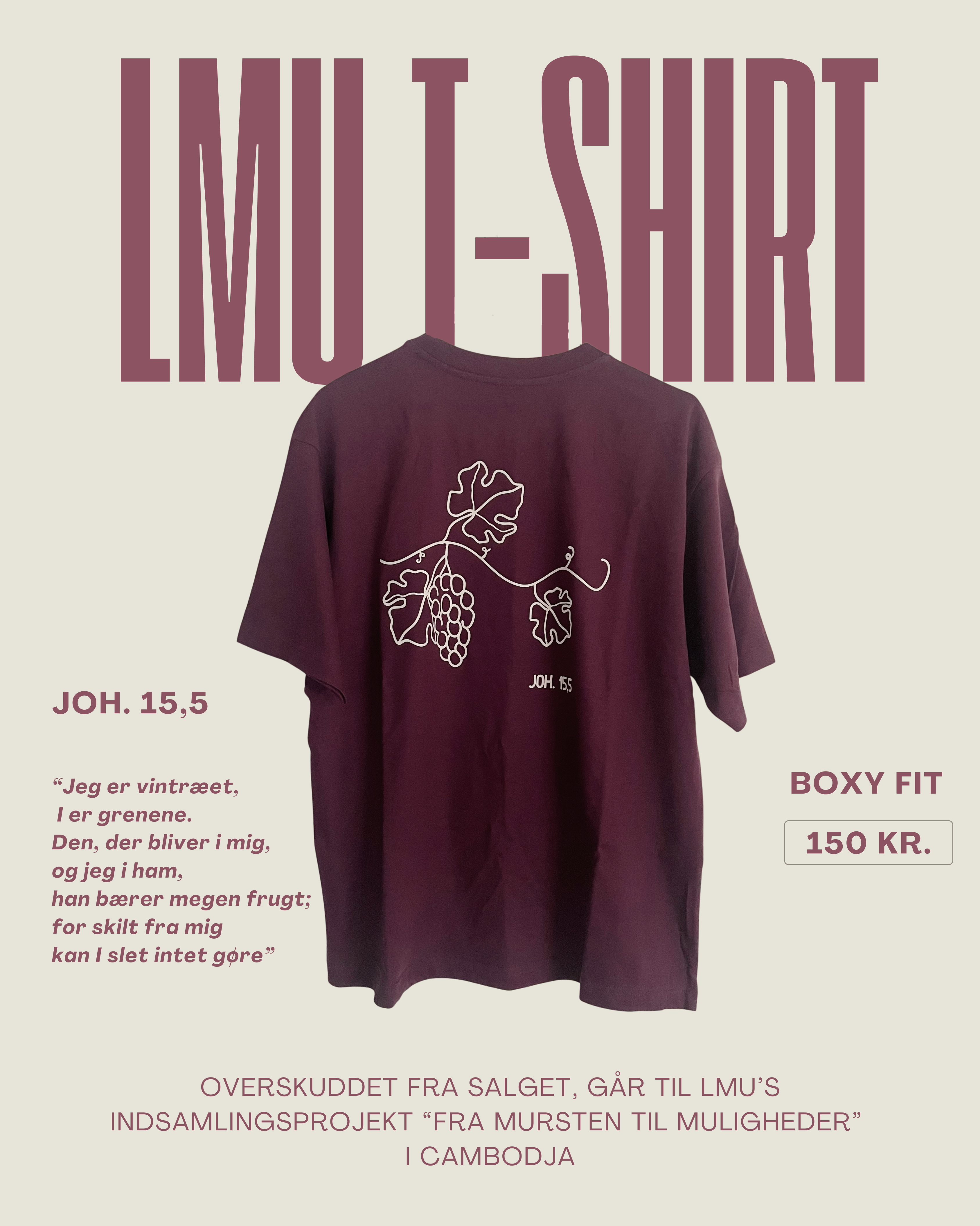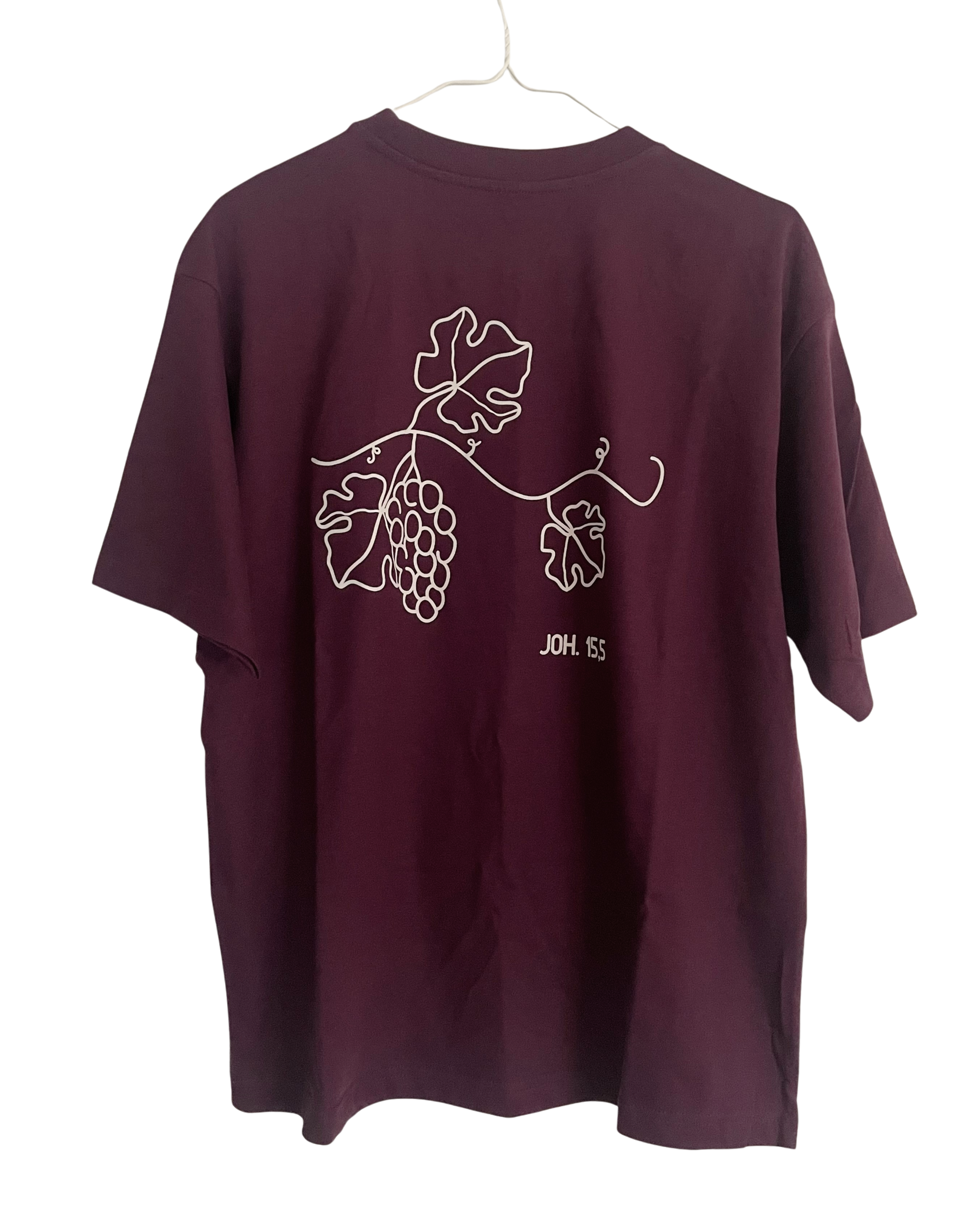 Vingren t-shirten er en stilfuld og oversized t-shirt, der med sit rygdesign henviser til Joh. 15,5, hvor Jesus siger om sig selv, at han er det sande vintræ, og at vi er grenene.